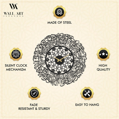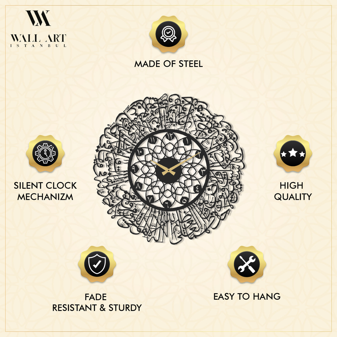 Metal Ayatul Kursi Islamic Wall Clock with Arabic Calligraphy for Muslim Homes