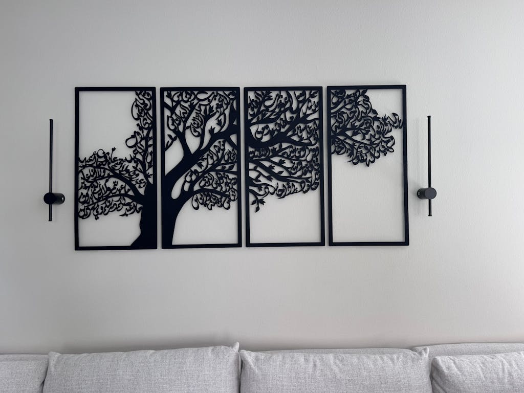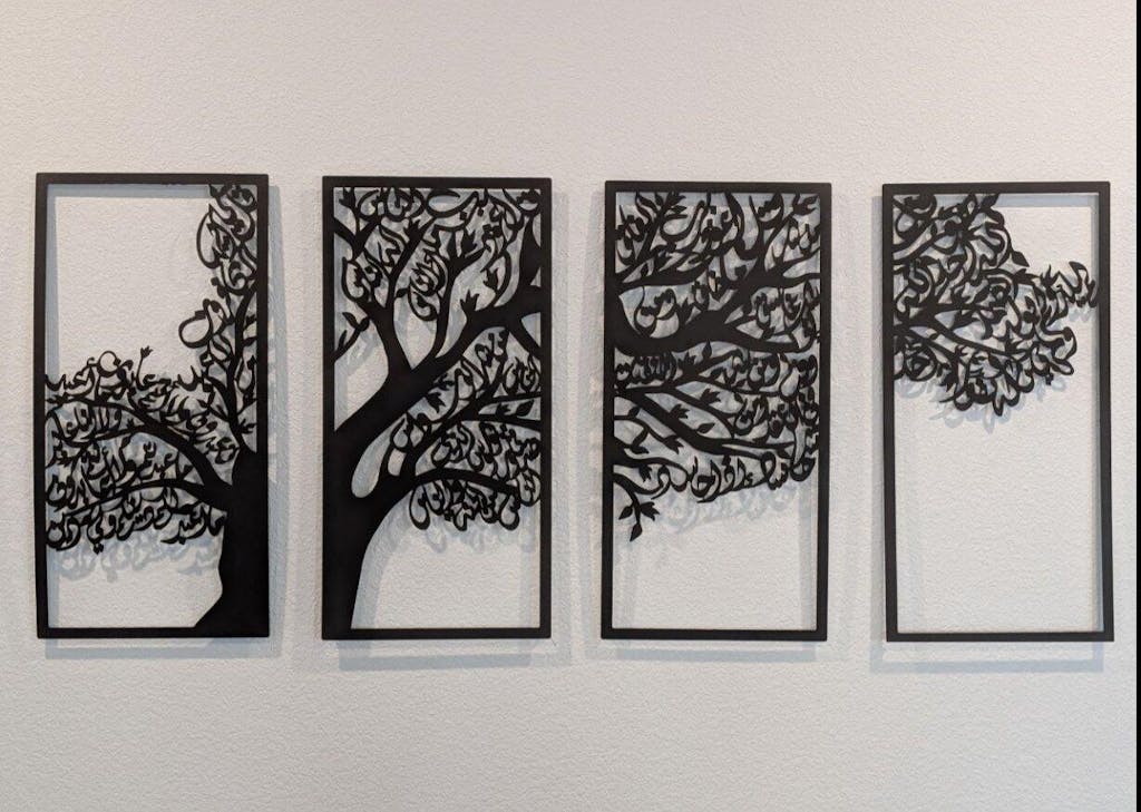 Perfect reminders for believers. I placed the art work at an entrance for all to see. The beautiful tree shape invites all to comment, asking what the translations are. Art as dawah!
