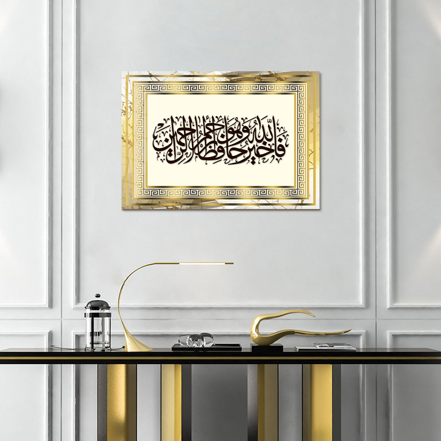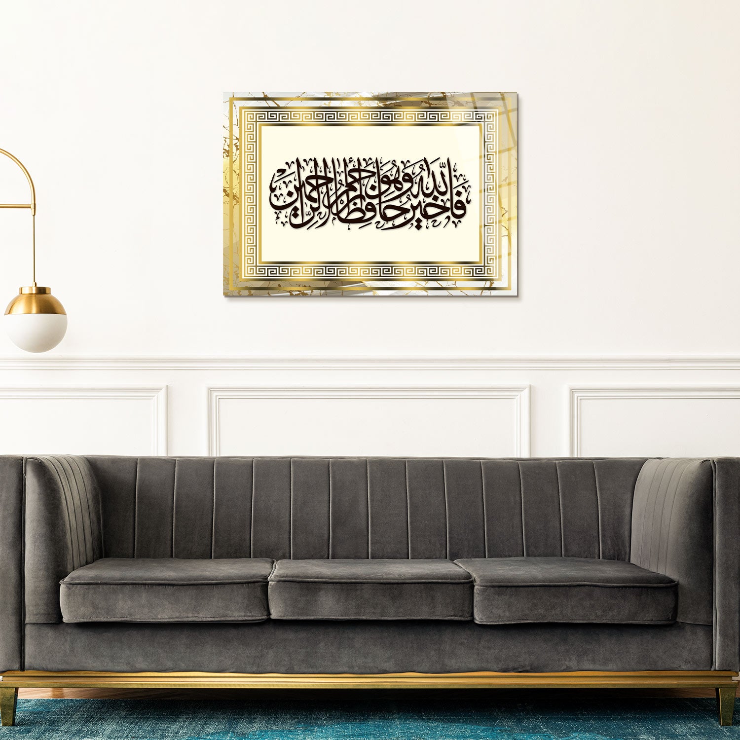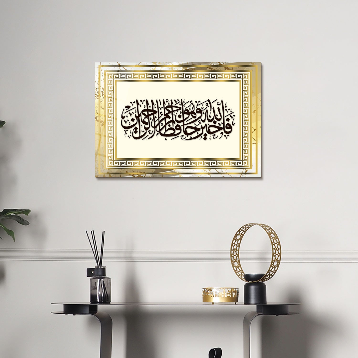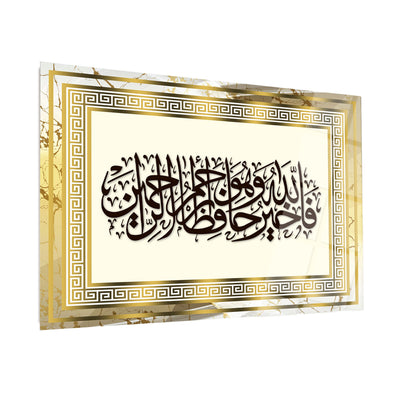 "Allah is the Best Guardian, and Allah is the Most Merciful of the Merciful." Surah Yusuf Glass Islamic Wall Art - WTC009