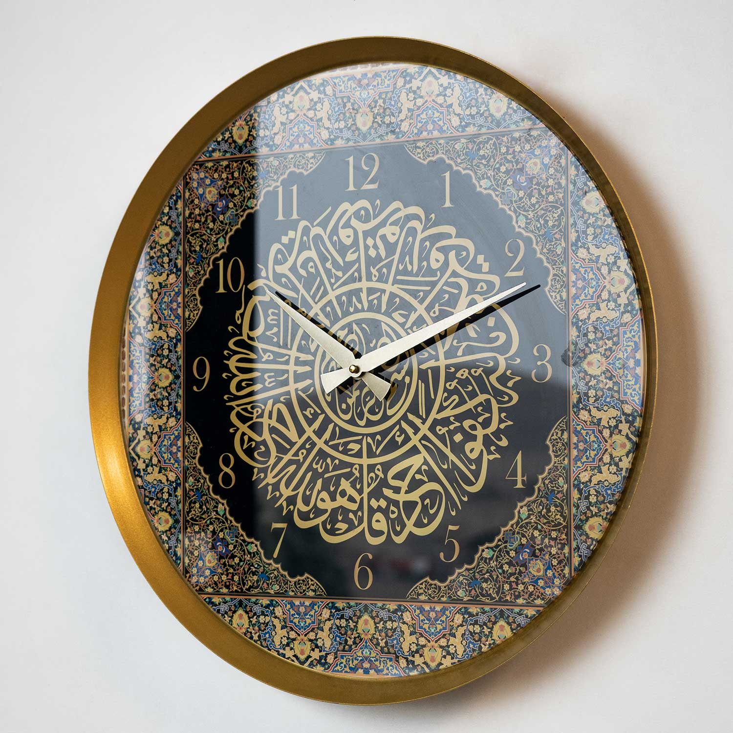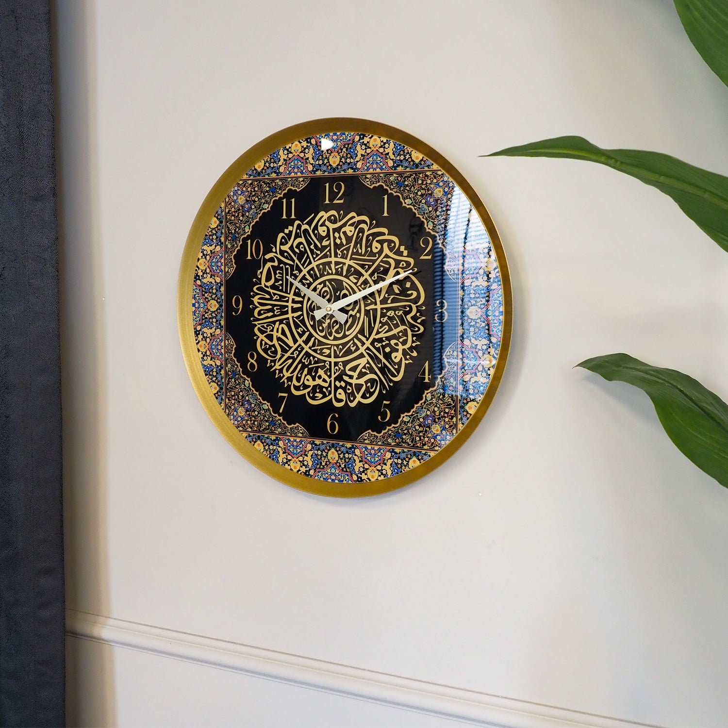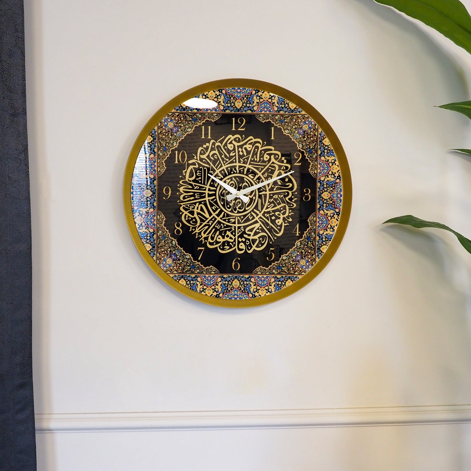 Colorful Surah Ikhlas Written Metal Wall Clock - Plexyglass Covered - WAMS012