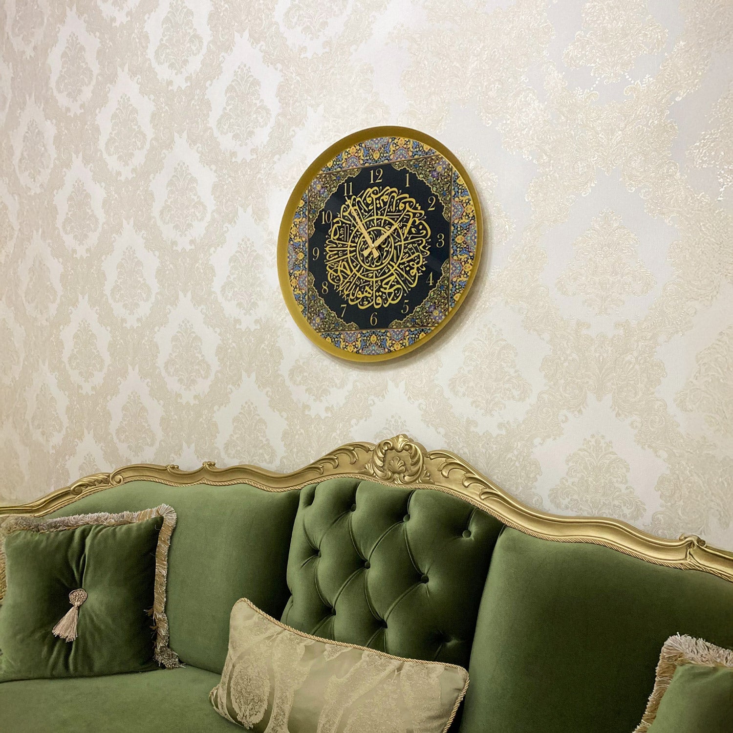 Colorful Surah Ikhlas Written Metal Islamic Wall Clock - Plexyglass Covered - WAMS012