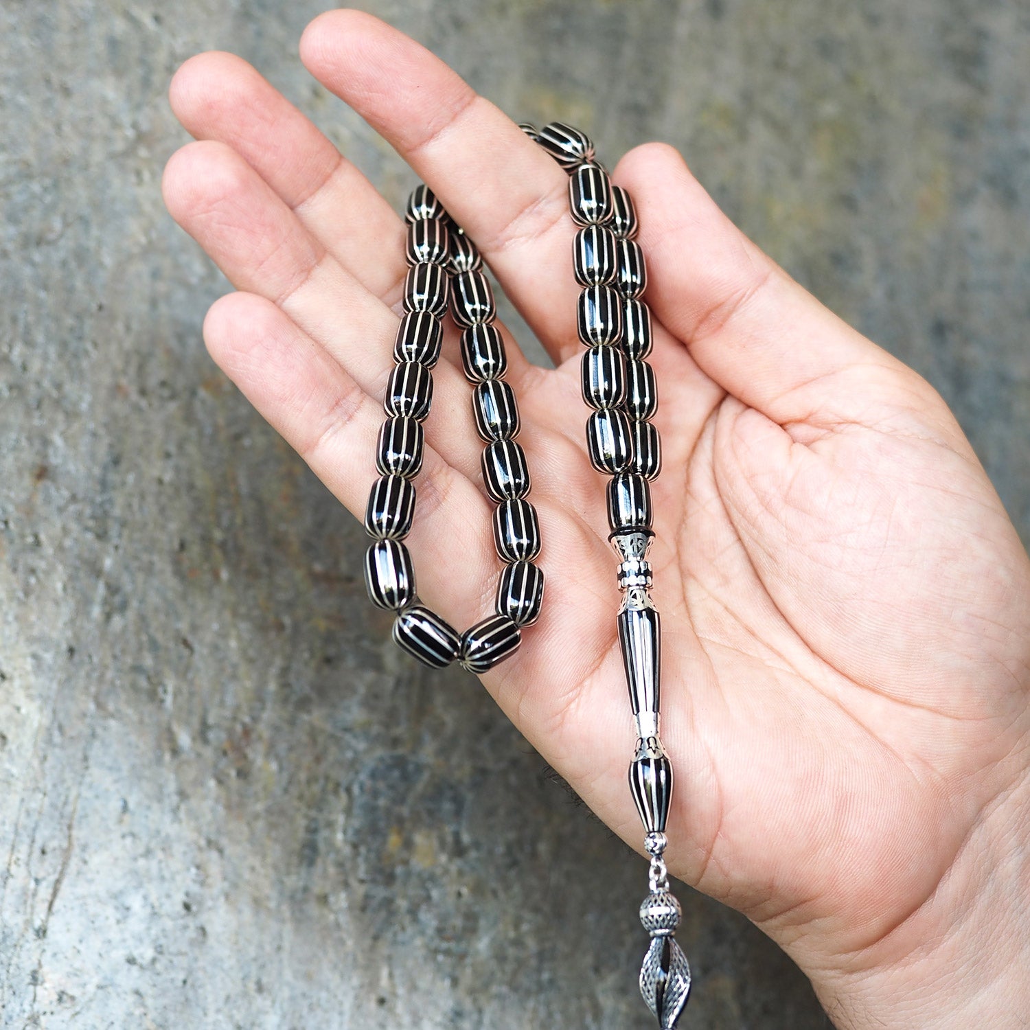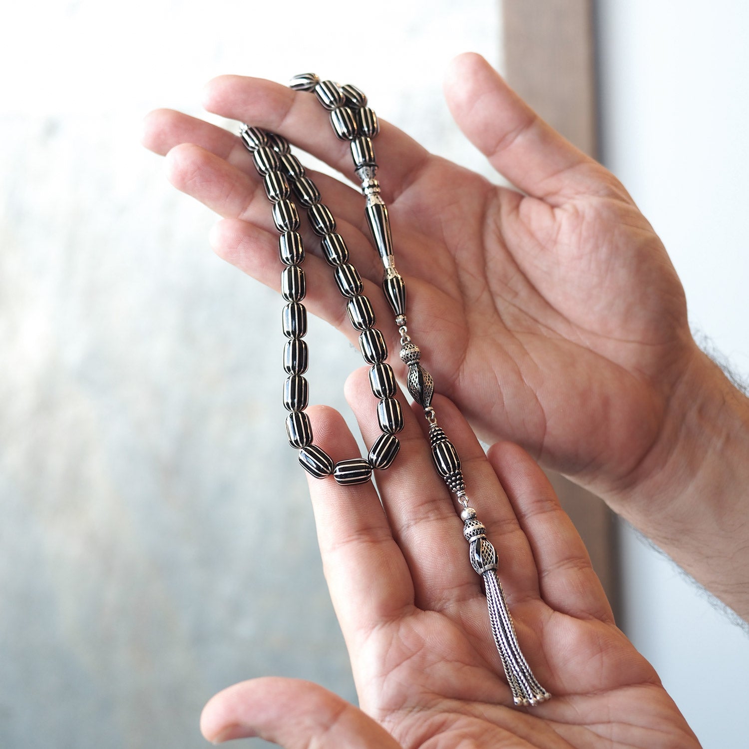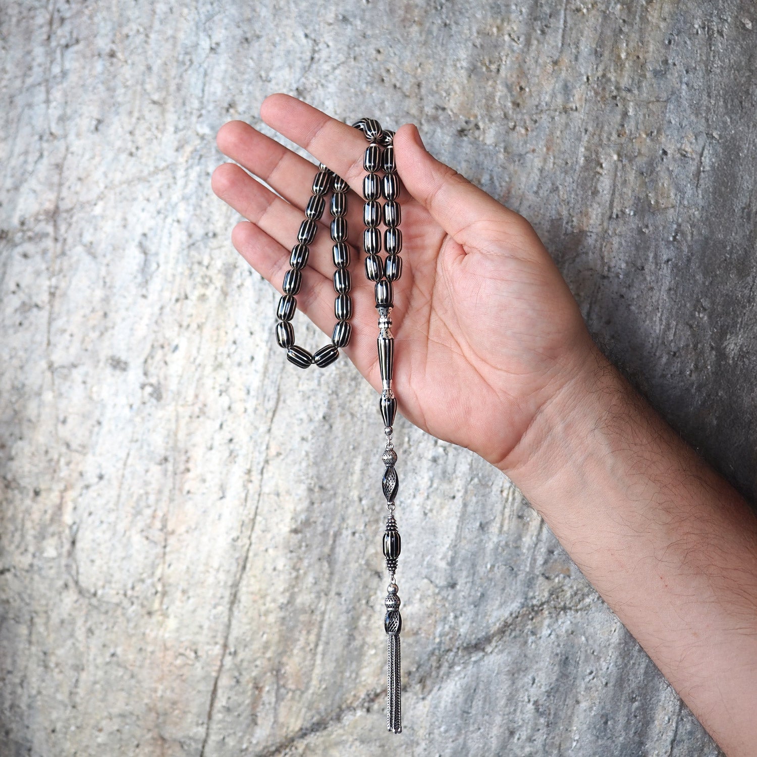 Crafted from Genuine Erzurum Oltu stone, Turquoise stone and adorned with intricate silver detailing, this limited edition tasbeeh is a symbol of elegance and devotion. Each bead is carefully handcrafted, offering a refined touch for daily prayer or meaningful gifting.