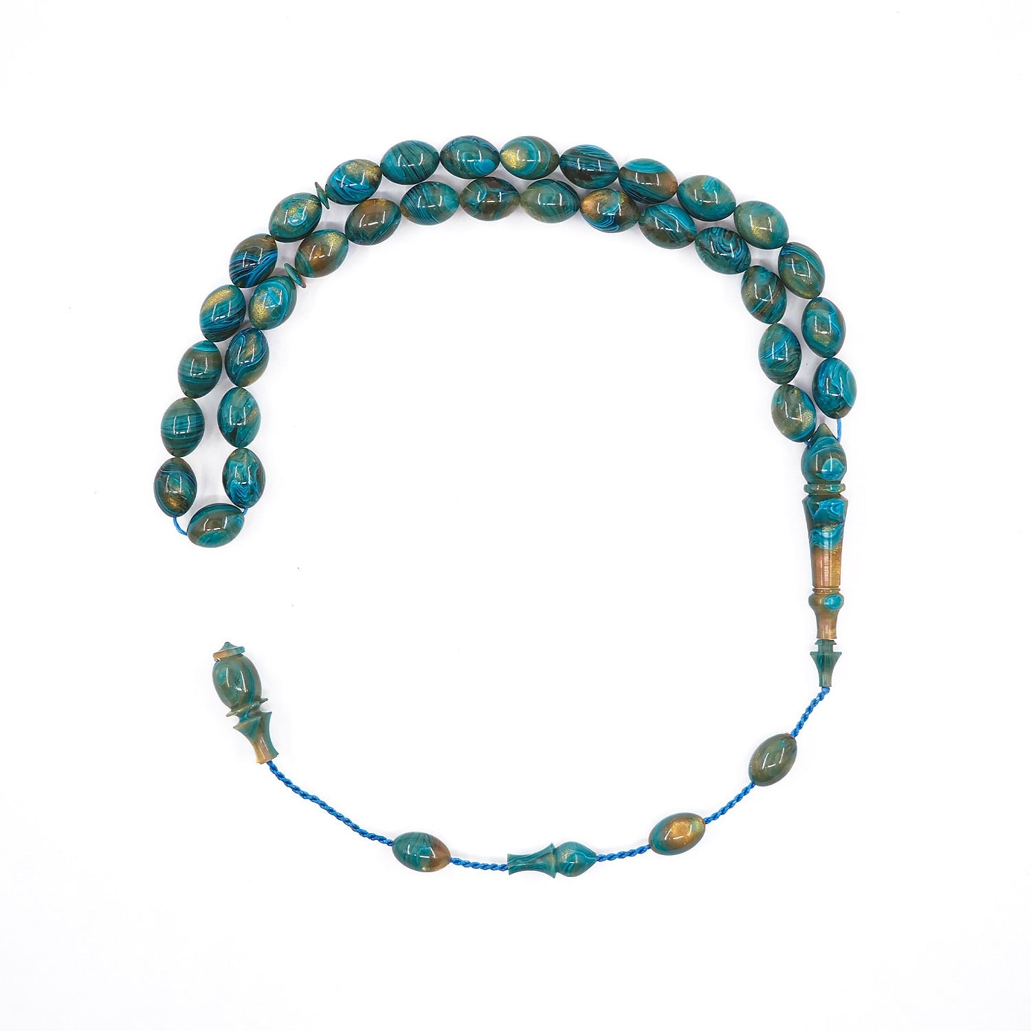 This handcrafted tasbeeh features custom cast Catalin beads with a smooth form, offering a balanced presence that combines visual depth with a comfortable, flowing grip.