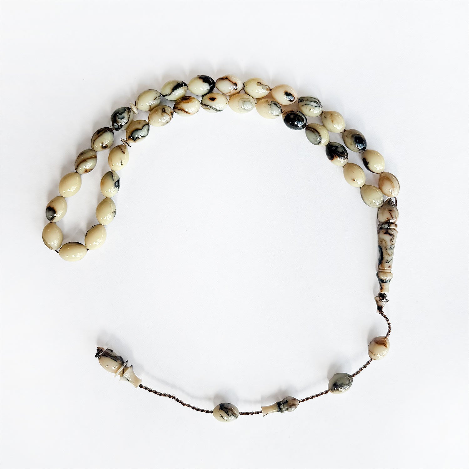 This handcrafted tasbeeh features custom cast Catalin beads with a smooth form, offering a balanced presence that combines visual depth with a comfortable, flowing grip.
