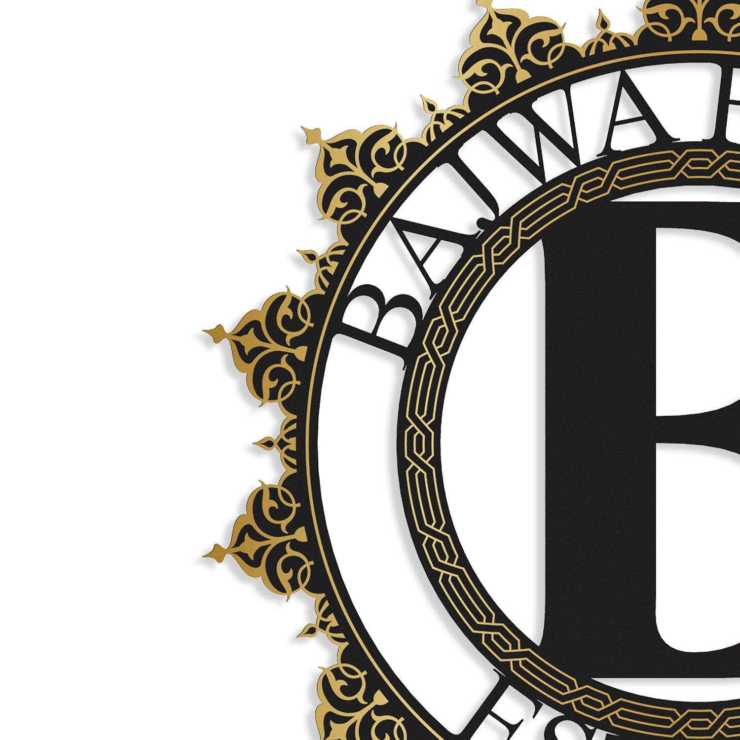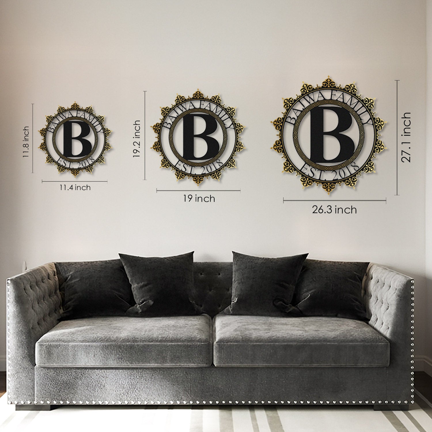 In the center, your family’s initial is featured in a bold and powerful form, while your family surname / family name and, if desired, your wedding year, establishment year, or a special date are elegantly incorporated around it. Each piece is produced entirely customized for you.