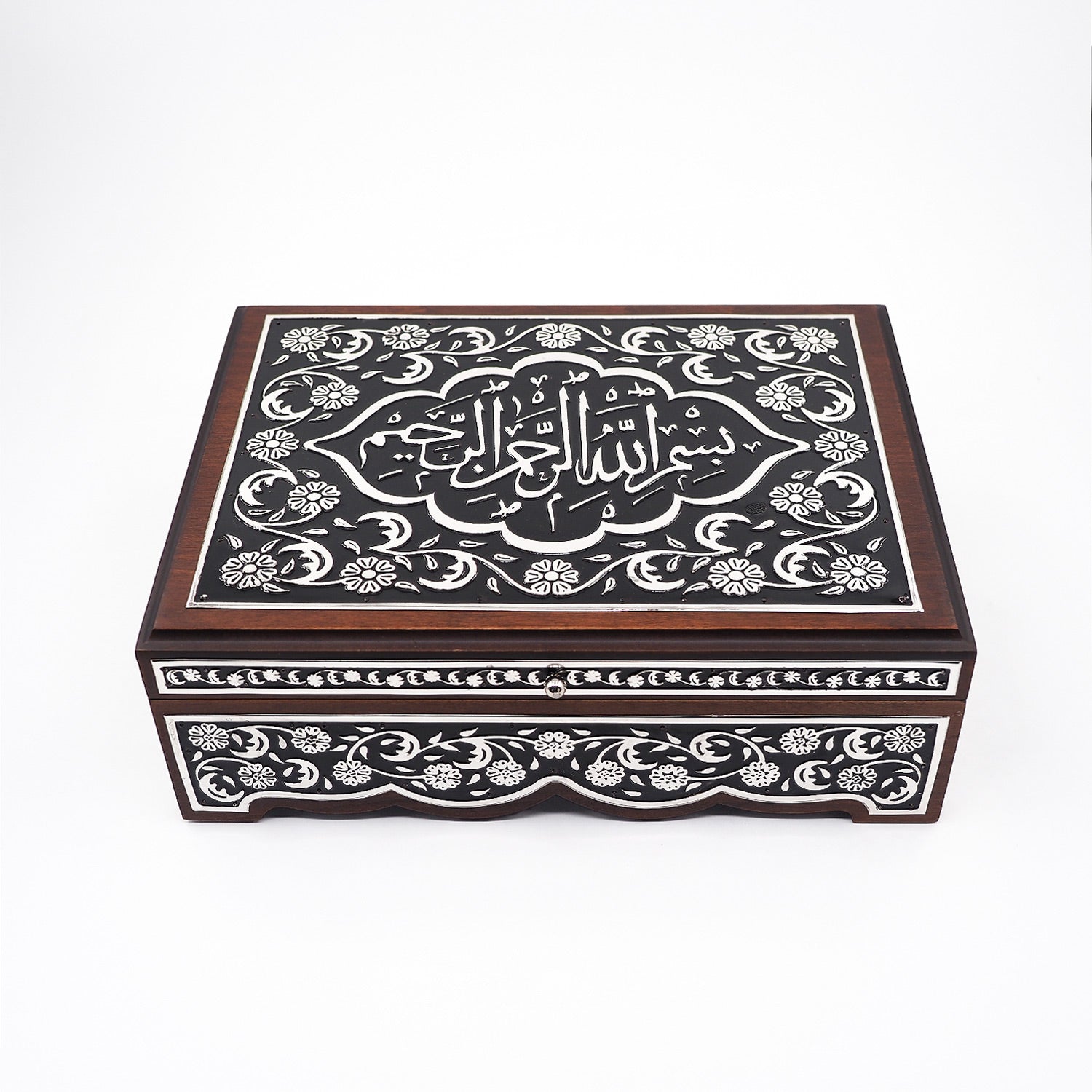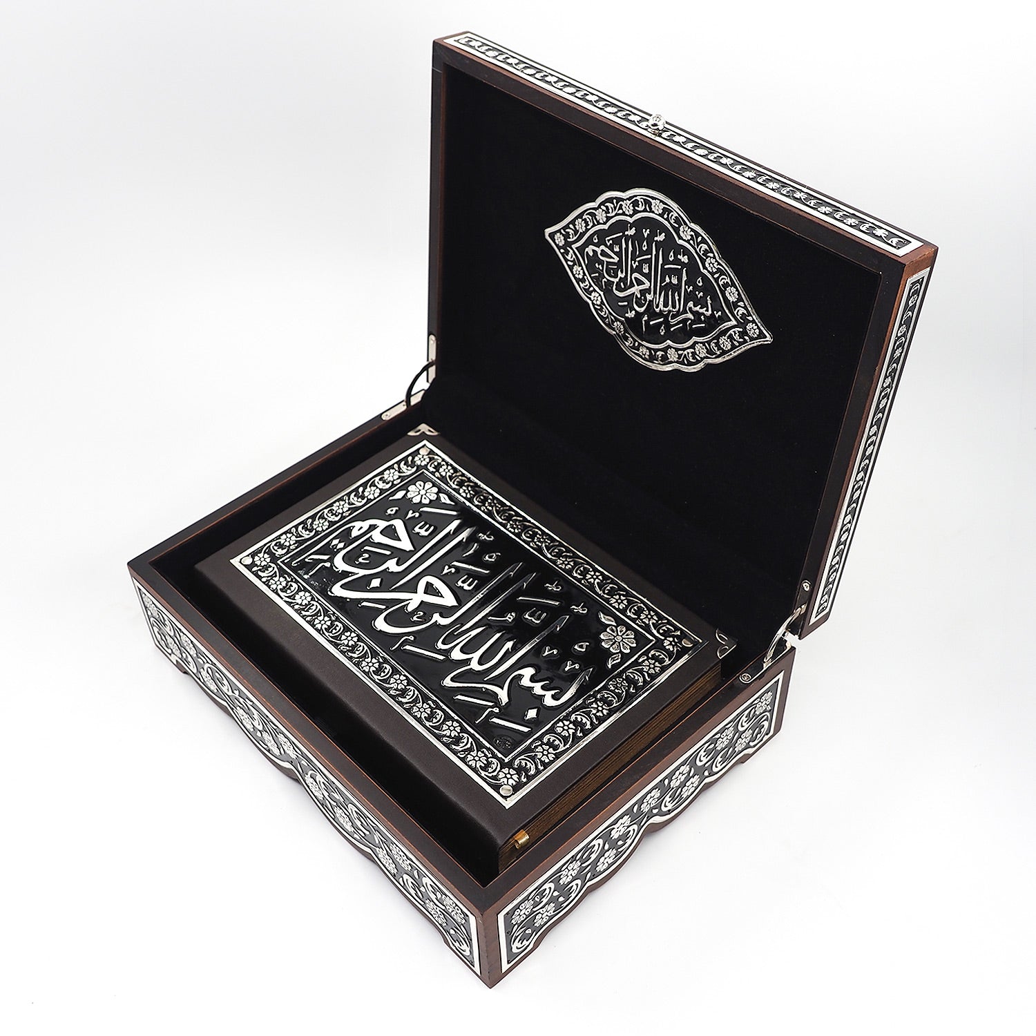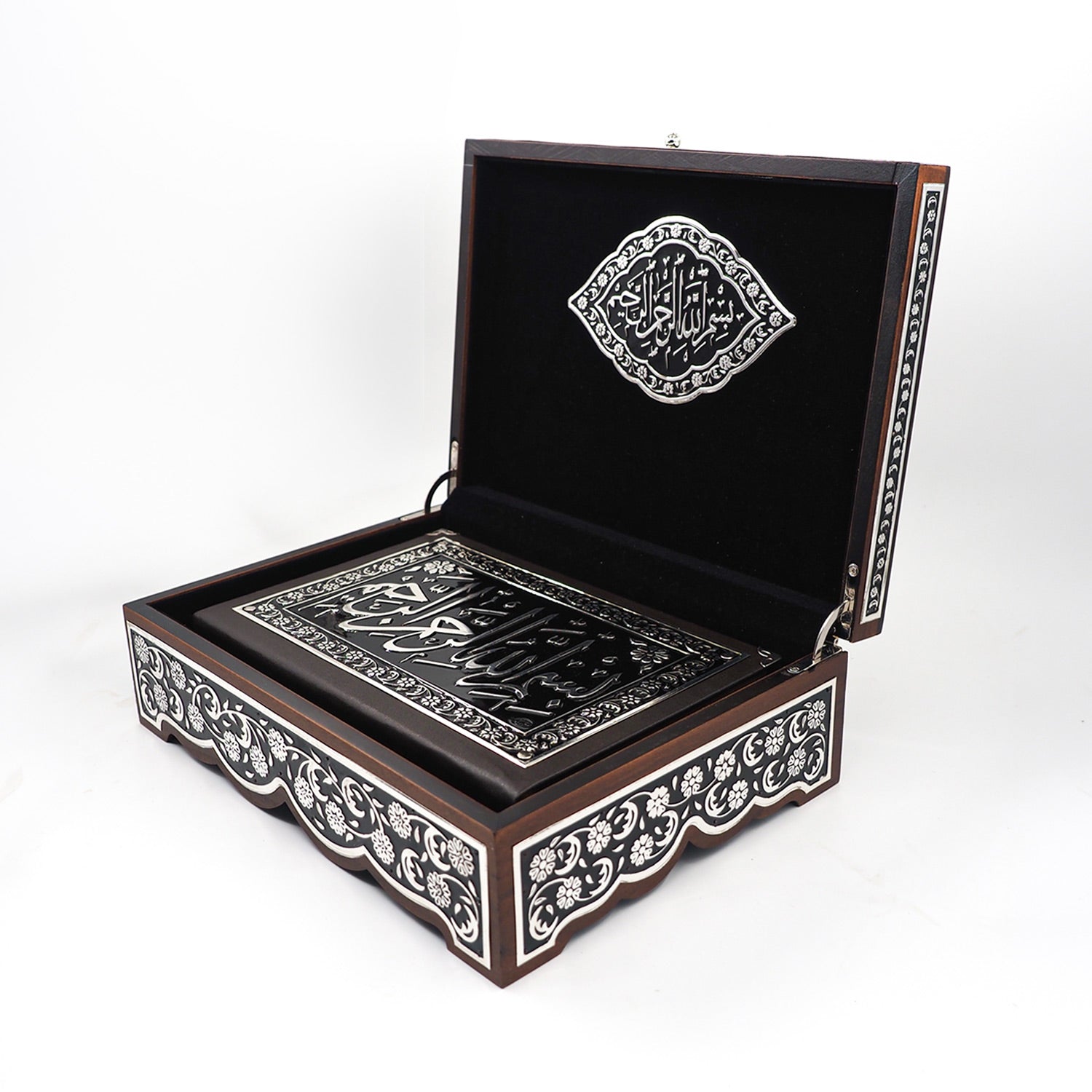 Premium Wooden Quran Box and Quran with Silver Engravings - WAP022