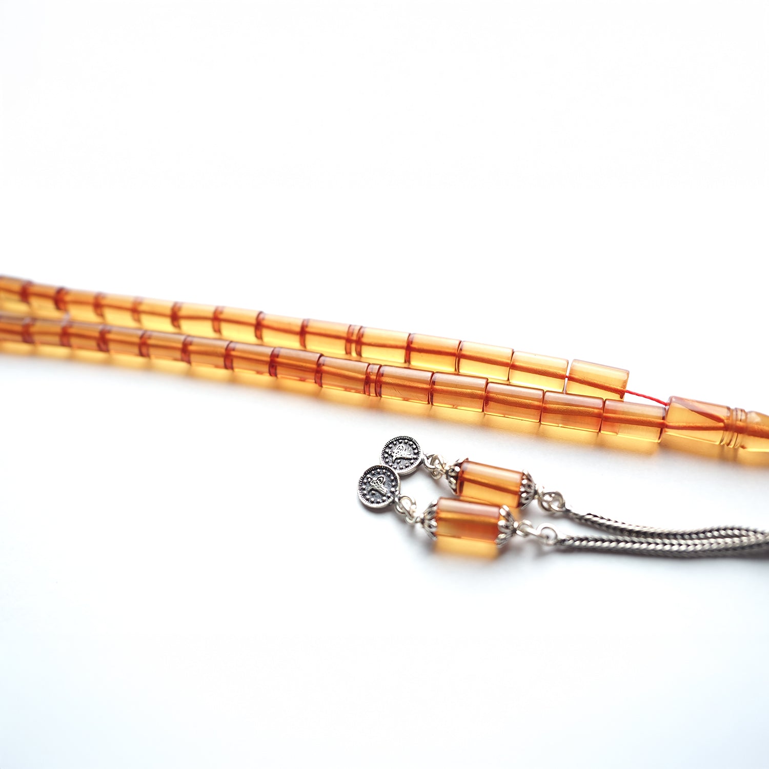 Pressed Fire Amber Tasbeeh Silver Tassel – WATD123