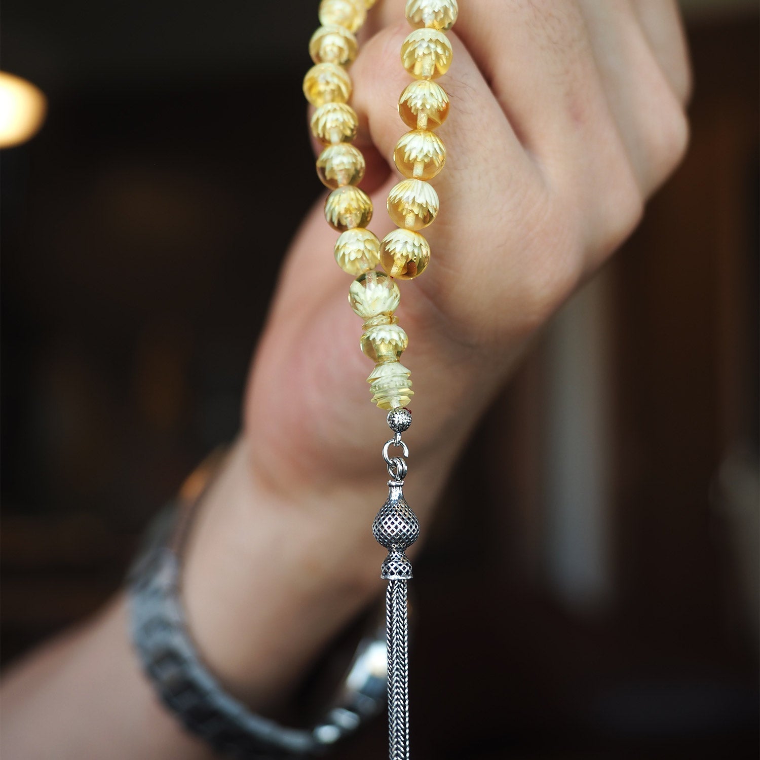 Raw Baltic Amber Tasbeeh – Single Piece with Reverse Carving – WATE055
