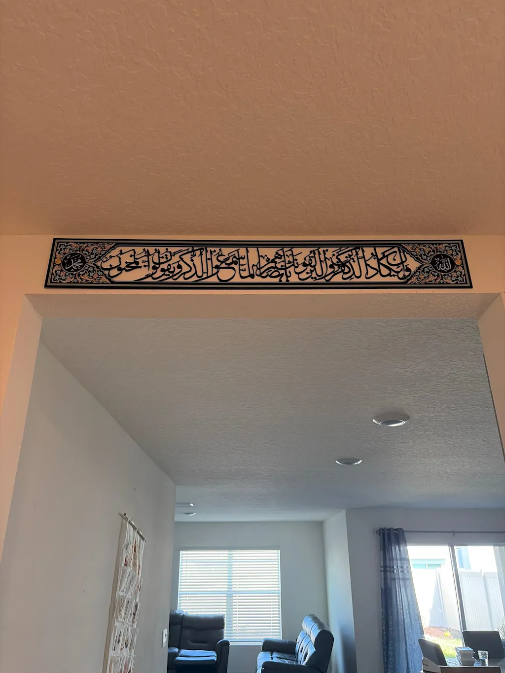 • Here is the version of the 51st Verse of the Surah al-Qalam, also known as the Evil Eye Verse, engraved on metal with calligraphy and colored.